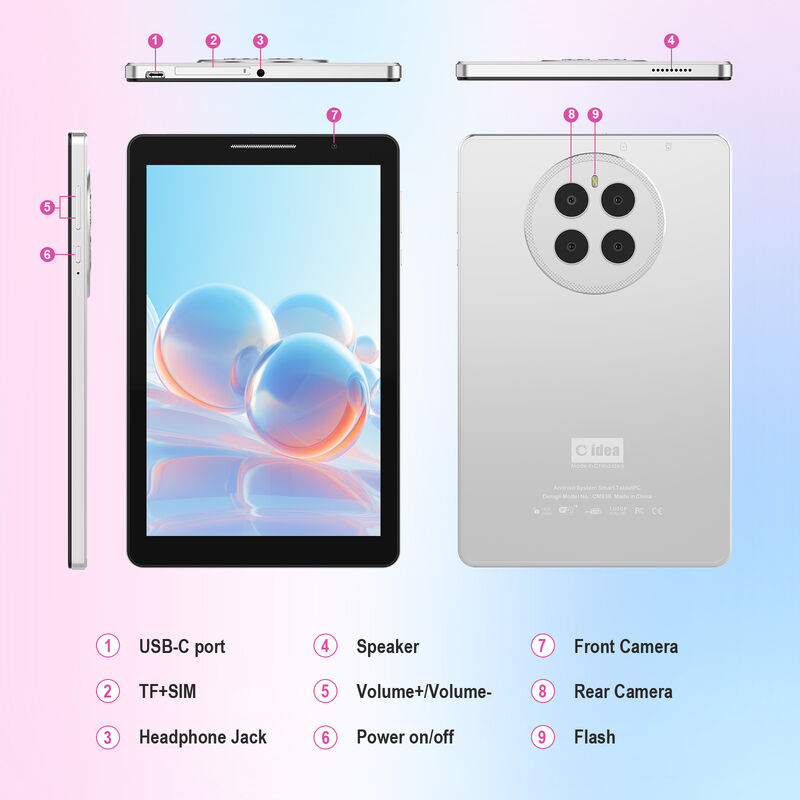 Ürün Açıklaması: Dijital deneyiminizi yeni zirvelere taşımak için tasarlanmış C idea CM936 ile tanışın. Güçlü Snapdragon QT615 8*CortexTm-A53 4*1.7GHz+4*1.0GHz işlemcisi ve 8 GB DDR belleği ile bu tablet, tüm görevleriniz için sorunsuz çoklu görev ve akıcı performans sağlar. 8 inçlik geniş IPS ekranı ve ARM Mali-400 MP2 GPU ile büyüleyici görsellerin ve sürükleyici oyun deneyimlerinin keyfini çıkarın. TF kart yuvası aracılığıyla 512 GB'a kadar genişletilebilen cömert 512 GB EMMC depolama sayesinde tüm uygulamalarınızı, fotoğraflarınızı ve medyalarınızı kolayca saklayın. Yüksek hızlı Wi-Fi ve isteğe bağlı 2G/3G/5G desteği ile hareket halindeyken bağlantıda kalın ve 8MP arka kamera ile her anı yakalayın. Dahili GPS, Bluetooth ve FM radyo ile CM936, nereye giderseniz gidin çok yönlülük ve kolaylık sunar. Uzun süreli güç için 8000mAh pil ile tamamlanan CM817 AIR, iş, eğlence ve aradaki her şey için en iyi yol arkadaşıdır.